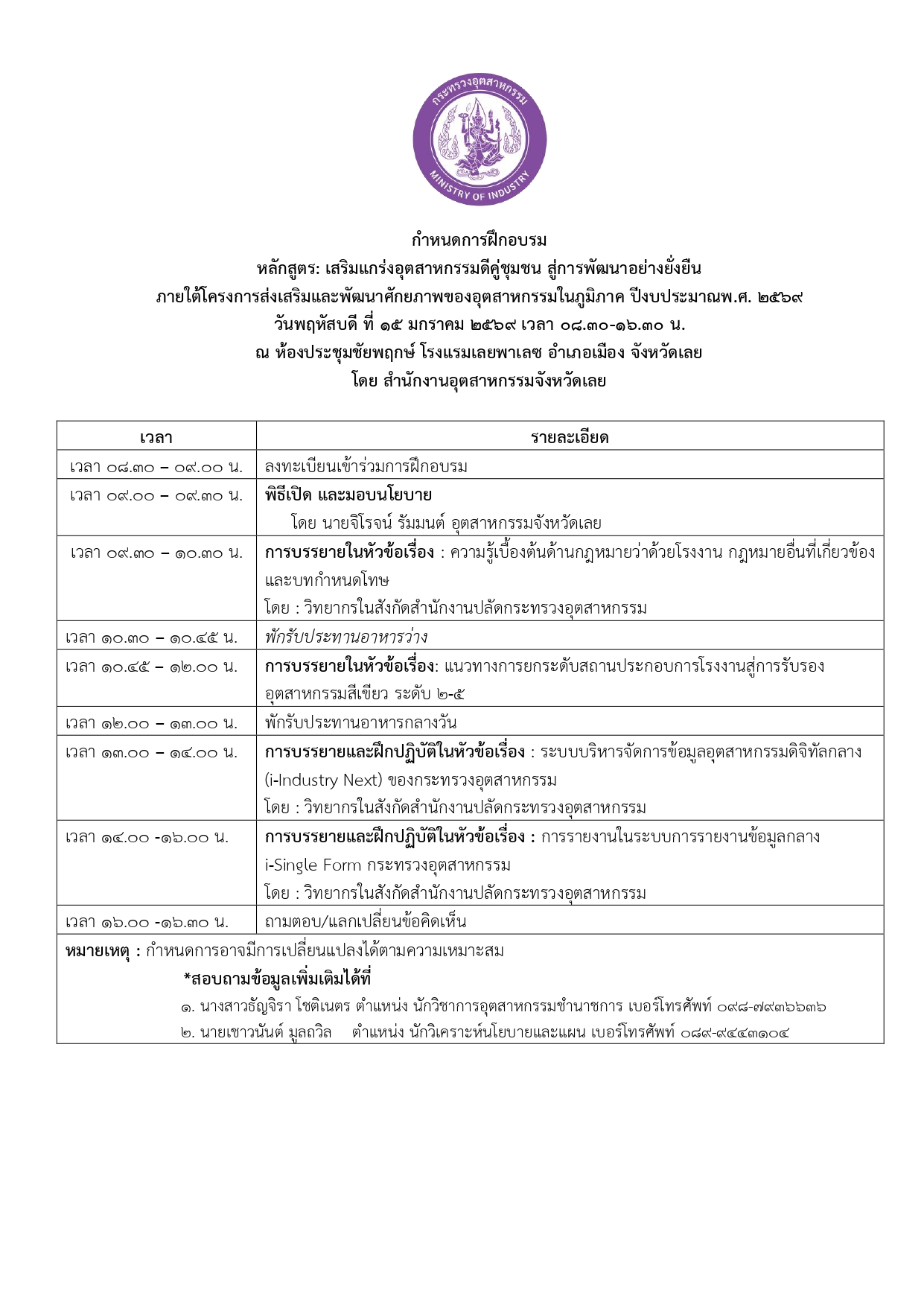 ขอเชิญผู้ประกอบการโรงงานอุตสาหกรรมจังหวัดเลย
